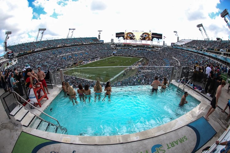 The Jags “fan experience” includes watching games from swimming pools.