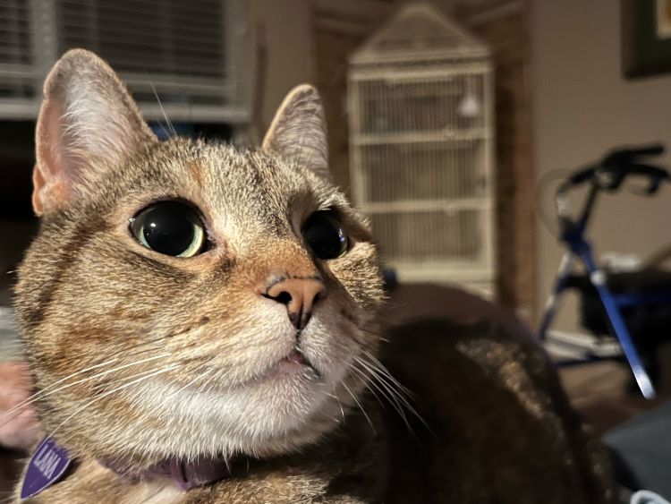 Unbelievably, the cats and dog looked around and rolled their eyes with “Who, me?” looks on their faces. And Roxy looked dead straight at Helen and blurted out, “Nope!”