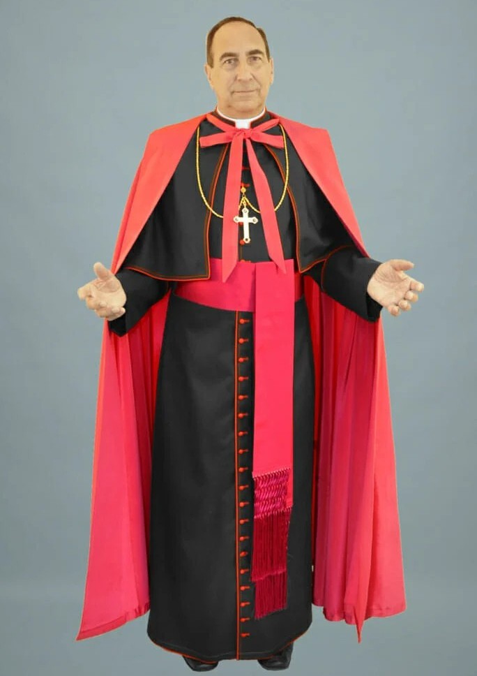 One Wednesday, the bishop – the Most Rev. David Cunningham – glided through the classroom door. He was stunningly resplendent in his red and black regalia, complete with skullcap (zucchetto) and flowing cape. As our teacher, a tiny young blonde woman, tentatively approached the bishop, he held out his hand, palm down. The woman dropped to her knees and kissed his ring.